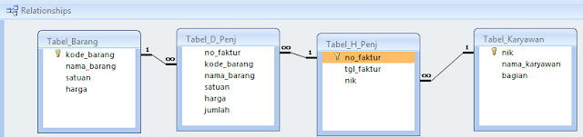 kita harus menghubungkan (Relationship) tabel-tabel tersebut :